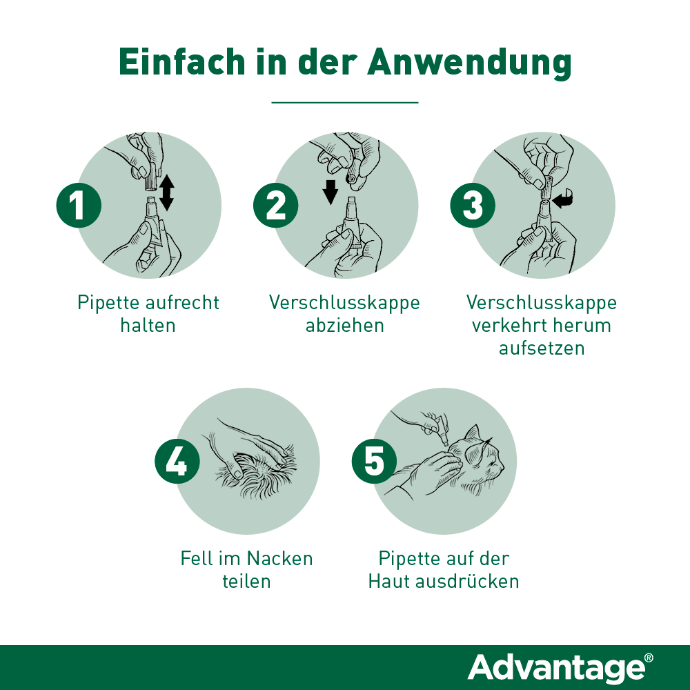 Advantage® wirkt bei Katzen 3-4 Wochen. Danach sollte es erneut angewendet werden.