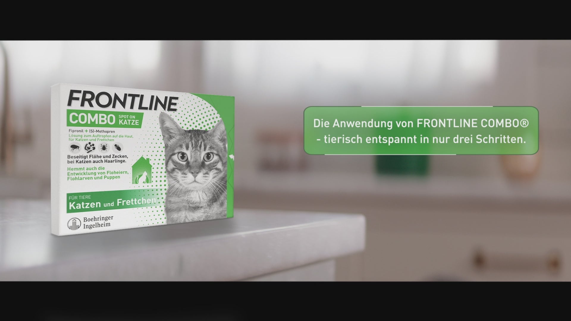FRONTLINE COMBO ist der Kombischutz für Tier und Heim. Nach dem Auftragen auf die Haut der Katze verteilt sich das Produkt mit dem natürlichen Talgfilm der Haut und wirkt so wie ein äußerer, unsichtbarer Schutzmantel gegen Zecken, Flöhe und Haarlinge bei Katzen und Frettchen. Für eine optimale Verteilung sollte das Tier innerhalb von zwei Tagen nach der Anwendung nicht gebadet werden. Danach ist FRONTLINE COMBO (wie alle FRONTLINE-Produkte) wasserfest. Die Parasiten nehmen den Wirkstoff bei Kontakt mit Fell und Haut auf und werden so innerhalb weniger Tage unschädlich gemacht. Gleichzeitig wird die Entwicklung von neuen Floheiern, -larven und -puppen auf dem Tier und in der direkten Umgebung des Tieres gehemmt.